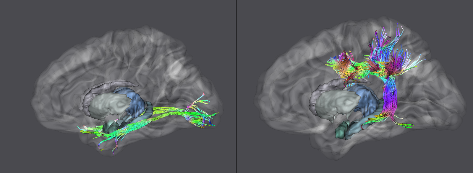Dincolo de imagini, adevărata provocare era localizarea. Tumora se afla în lobul temporal stâng, în vecinătatea unor structuri esențiale pentru limbaj. Analiza preoperatorie a arătat că leziunea infiltra și limita fasciculele lungi de asociație din substanța albă profundă a emisferului stâng. La polul superior al regiunii tumorale se afla aria Wernicke, cu rol crucial în înțelegerea limbajului. În profunzime și în vecinătate erau implicate rețele funcționale majore, în special fasciculul arcuat stâng, cu rol central în limbaj, și fasciculul fronto-occipital inferior (IFOF), important pentru integrarea semantică și cognitivă, pentru înțelegerea complexă a limbajului, dar și pentru integrarea informației vizuale.