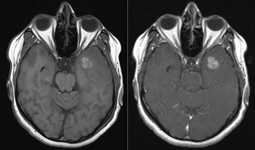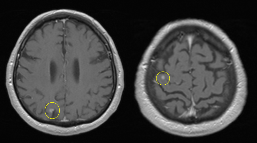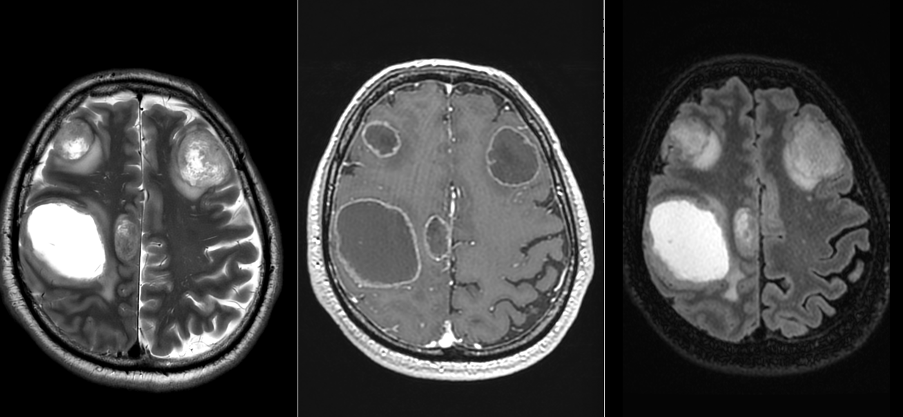 Se face cu tumori cerebrale primare (glioblastom, astrocitom, etc.), abces cerebral, leucoencefalopatie multifocală progresivă, scleroză multiplă sau accident vascular cerebral.